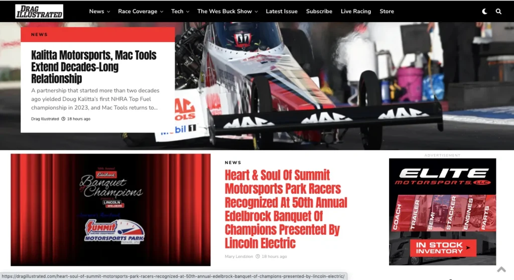 Drag Illustrated magazine, a popular motorsports magazine, serves as an effective channel for Mactools to promote its partnership as both target the same audiences, which are automotive enthusiasts, professionals, and fans.