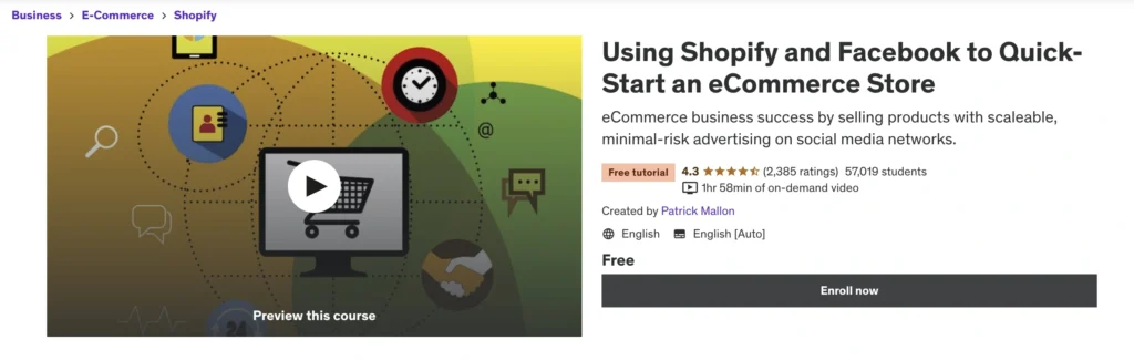 “Using Shopify and Facebook to Quick-Start an eCommerce Store” is an in-depth Shopify course for eCommerce beginners by eCommerce expert, Patrick Mallon. The course description specifically stated that its target is beginners interested in creating their own cash flow business.