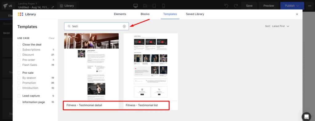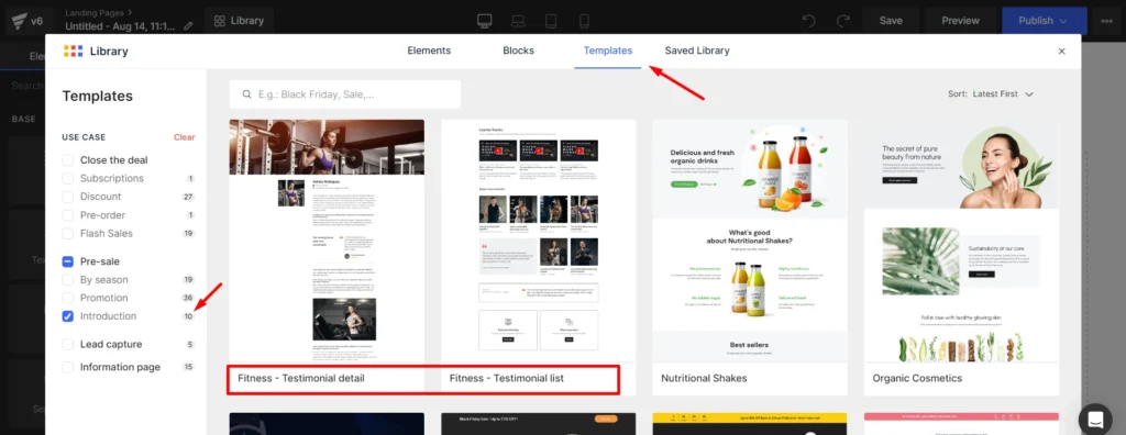 You can also find testimonial templates by clicking “Introduction” on the Use Case filter on the left sidebar.