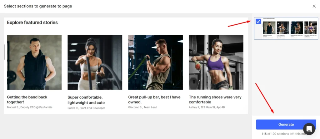 Step 5: Customize the sections in the generated layout using upgraded settings in the left sidebar.